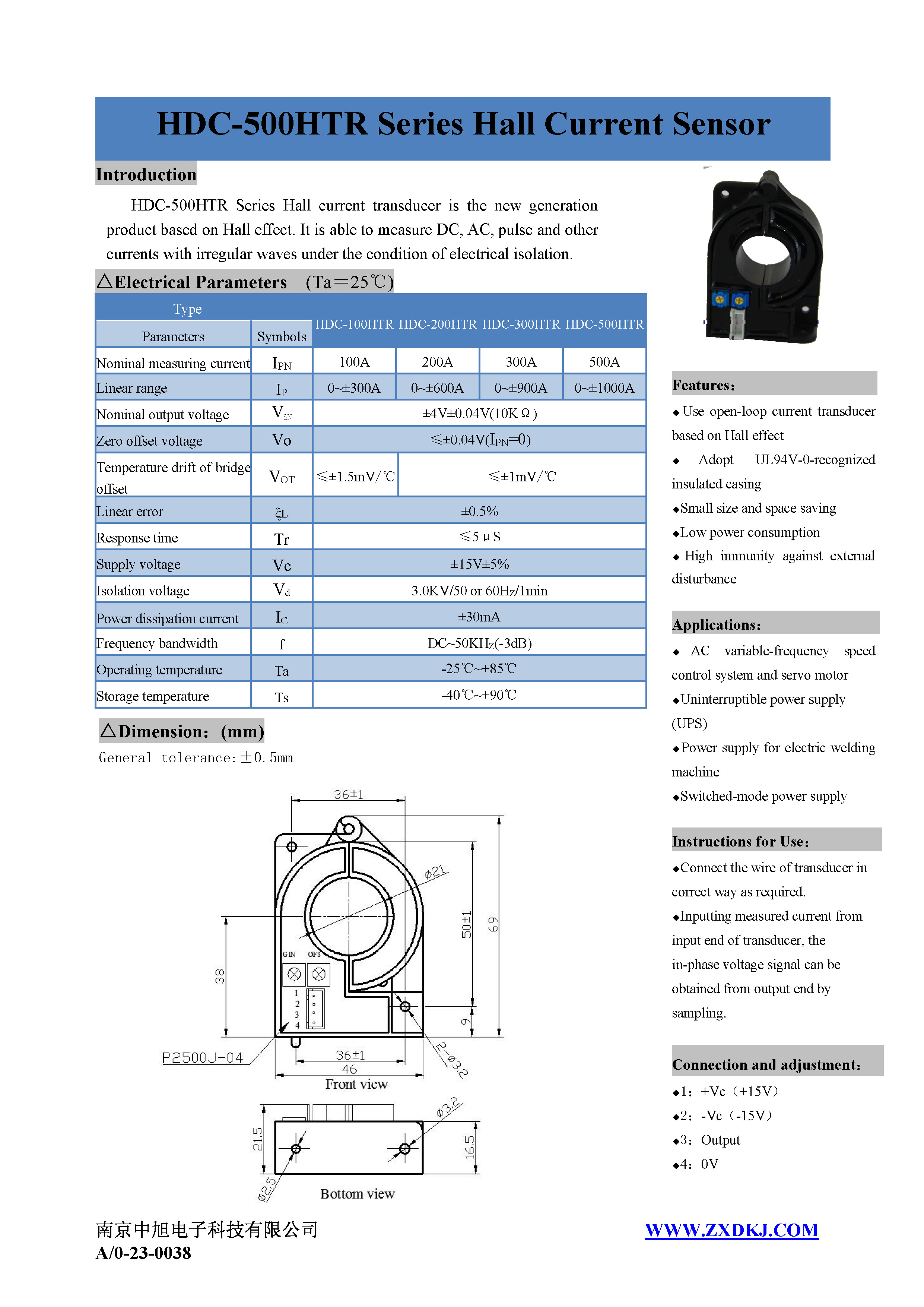 HDC-500HTR系列霍爾電流傳感器是應(yīng)用霍爾效應(yīng)原理的新一代電流傳感器,能在電隔離條件下測(cè)量直流、交流、脈沖以及各種不規(guī)則波形的電流。